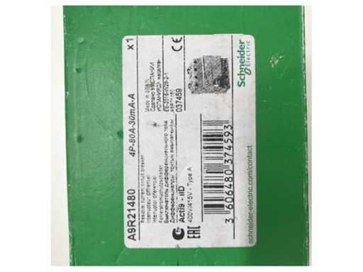 Schneider Electric A9R21480 earth leakage circuit breaker 4p 80a 30 mA