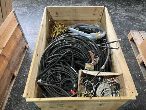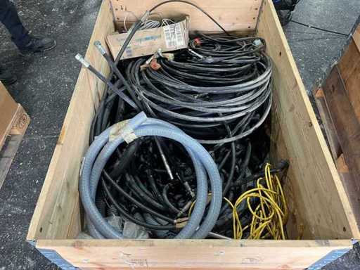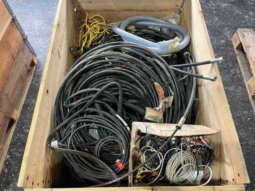 Pallet met verschillende slangen en kabels
