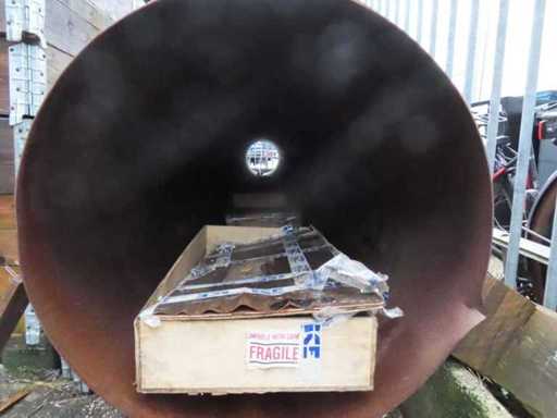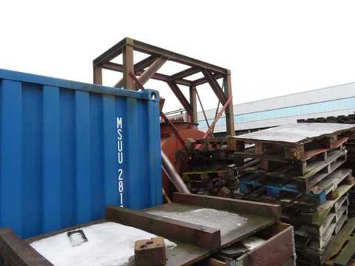 metalen frame, betonnen binnenzijde, inclusief ca 10 meter lange schoorsteen