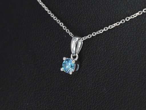 Witgouden halsketting met een blauwe diamant 0.25 carat