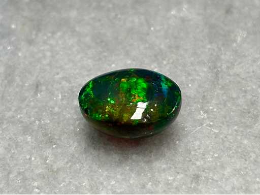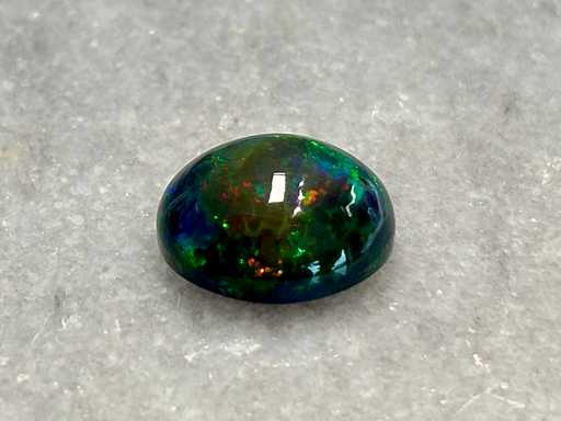 Edelsteen: Black opal; Aantal: 1 stuk; Slijpvorm: Ovaal geslepen; Gewicht (carat): 6.73 carat; Kleur: Zeer hoog in kleuren diversiteit; Conditie: Nieuw; Verpakking: Edelsteendoos; Toelichting: De kwaliteit is overgenomen van het rapport behorend bij item. De waardebepaling is een beoordeling van een gecertificeerde diamantair, gebaseerd op consumentenprijzen.; Consumentenprijs: € 2.960,-