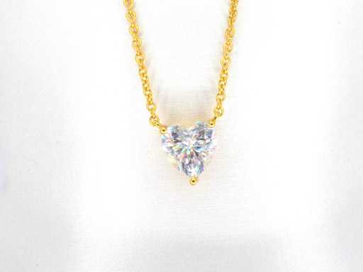 Edelsteen: Moissaniet; Aantal: 1 stuk; Slijpvorm: Hart vorm geslepen; Gewicht (carat): 1.00 carat; Kleur: E-F; Zuiverheid: VVS; Slijpkwaliteit: Zeer mooi; Juweel: Halsketting; Merk: Harmony; Gewicht: 2 gram; Afmetingen/lengte: 40 - 45 cm (verstelbaar); Materiaal: Vermeil hoog gehalte sterling zilver (925); Conditie: Nieuw; Verpakking: Sieradendoos of fluwelen etui; Toelichting: De kwaliteit is overgenomen van het rapport behorend bij item. De waardebepaling is een beoordeling van een gecertificeerde diamantair, gebaseerd op consumentenprijzen.; Extra informatie: Het gemeten gewicht van de edelstenen is volgens diamant maten; Consumentenprijs: € 960,-