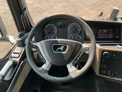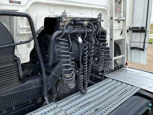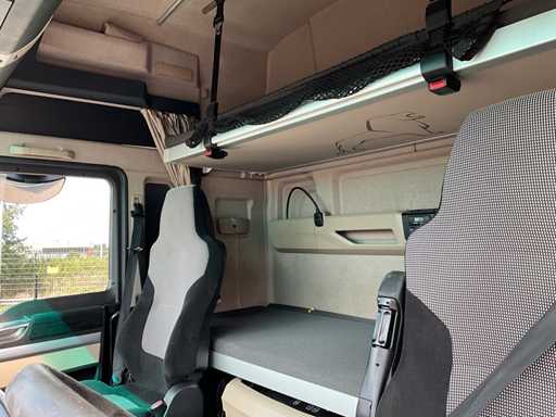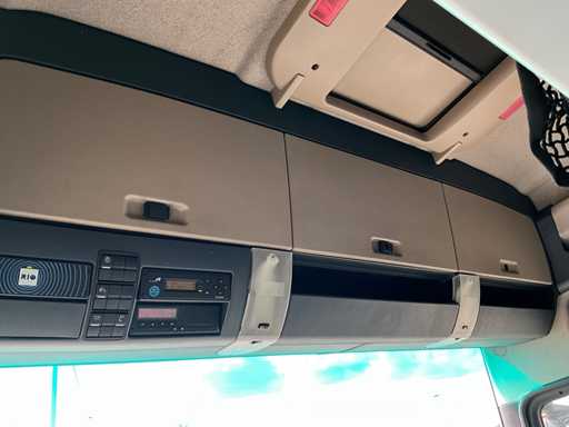elektrische ramen en spiegels, spiegel verwarming, stuurwiel bediening, airco, sper, digitale tachograaf, koelkast, slaapcabine, dubbele brandstoftank, start onderbreker