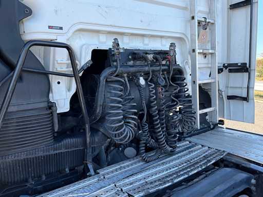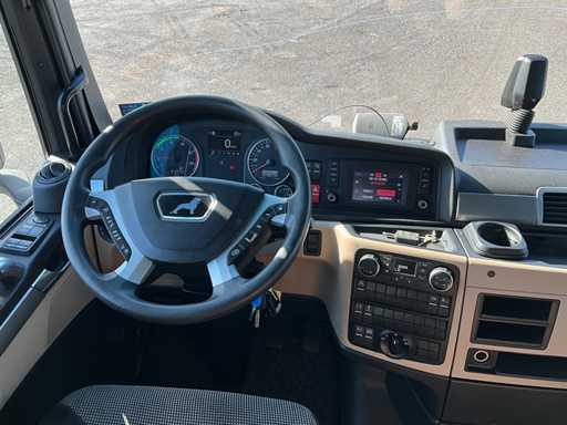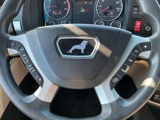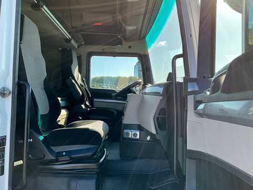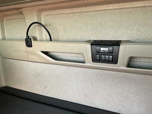 elektrische ramen en spiegels, spiegel verwarming, stuurwiel bediening, airco, sper, digitale tachograaf, koelkast, slaapcabine, dubbele brandstoftank, start onderbreker