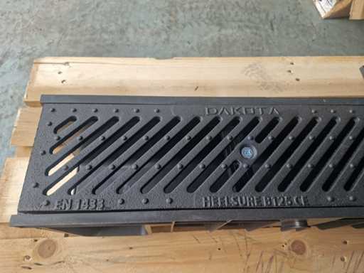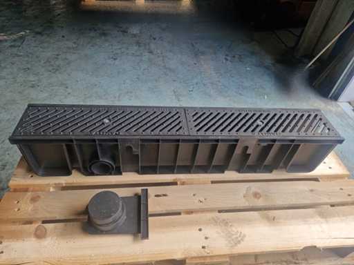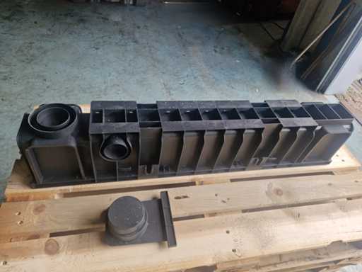 Afmetingen van de buiten maat (breed x hoog x lang) circa 16 cm x 20 cm x 100 cm. Type omschrijving: Goten van kunststof met een afneembaar stalen deksel. inclusief 2sets eindstukken. Aantal pallets: 1. U kunt deze kavel afhalen in Hulst op 18 februari. Daarvoor moet u uiterlijk 8 februari uw factuur van Troostwijk betaald hebben. Bij betaling ná deze datum blijft uw kavel bij de verkoper staan en is afhalen in Hulst enkel mogelijk op afspraak.
