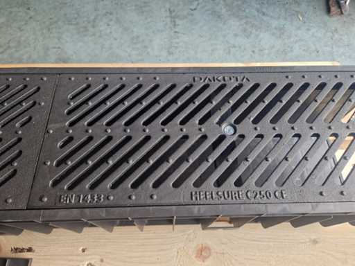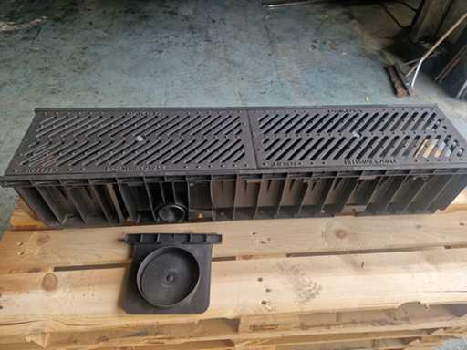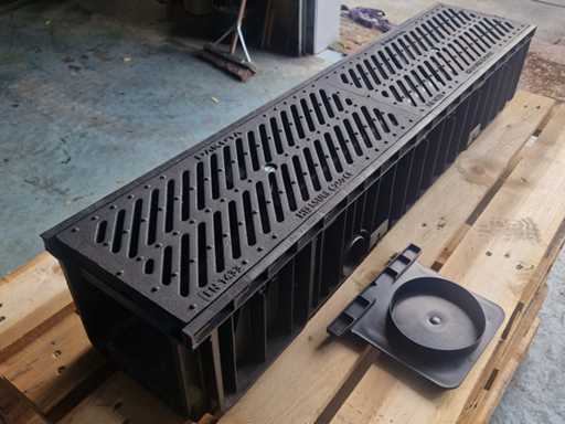 Afmetingen van de buiten maat (breed x hoog x lang) circa 22,5 cm x 20 cm x 100 cm. Type omschrijving: Goten van kunststof met een afneembaar stalen deksel. inclusief 4sets eindstukken. Aantal pallets: 1. U kunt deze kavel afhalen in Hulst op 18 februari. Daarvoor moet u uiterlijk 8 februari uw factuur van Troostwijk betaald hebben. Bij betaling ná deze datum blijft uw kavel bij de verkoper staan en is afhalen in Hulst enkel mogelijk op afspraak.