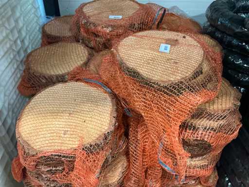 50 zakken, per zak 4 berkenschijven = totaal 200 berkenschijven. Diameter 28-32/D3cm.