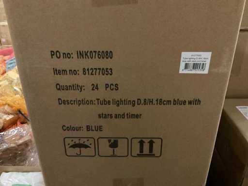 Partij Tube Lighting D8/H18cm blue with stars and timer (72x)