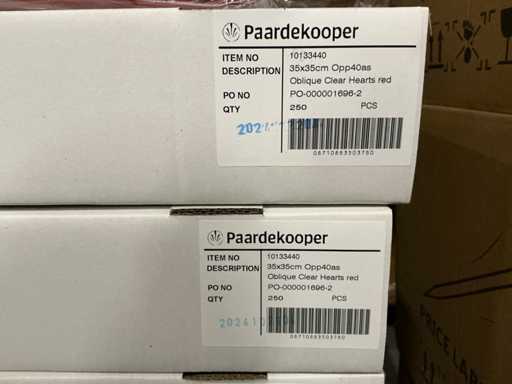 Partij Sleeves 35X35CM Opp40as Oblique Clear Hearts red (2000x)