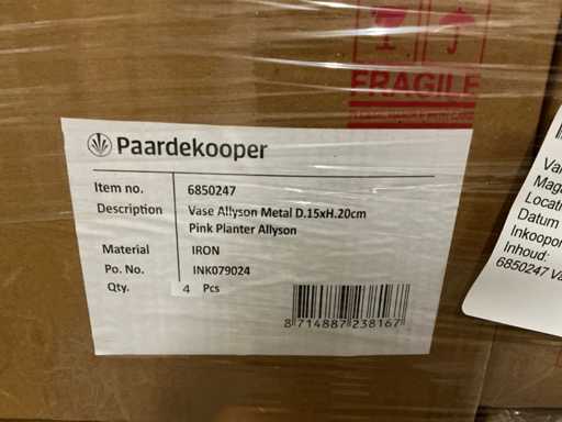 Partij vazen Allyson metaal pink planter D.15xH.20cm (144x)
