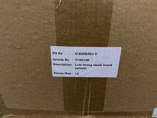 33 dozen, per doos 12 Lata string small round natural = totaal 396 Lata string small round natural.