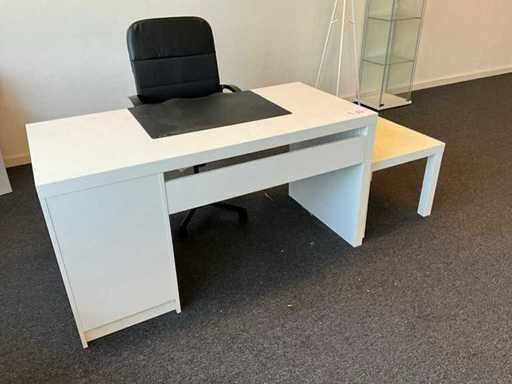 Inclusief totaal 4 stoelen en 2 bureaustoelen, 1x kast, 1x vitrinekast, 1x kapstok en 1x ronde tafel met glasplaat.