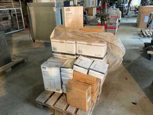 Inclusief 5x Uni-Form 06 handdoek dispenser, 6x doos à 500 handdoeken, 8x doos à 25 Durable naambadges