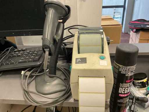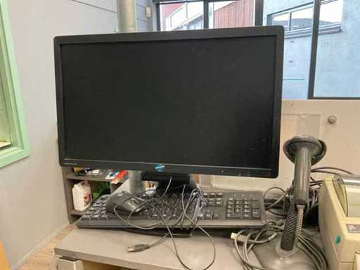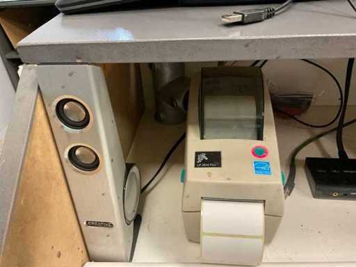 Bestaande uit: scherm, 2x toetsenbord, 2x labelprinter, 2x muis, 2x Creative speaker , scanner, telefoon.