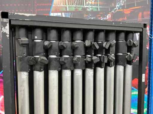 Lengte: 180-420. Inclusief: transporttrolley, voetplaat, ligger, staander en voetplaat pin.