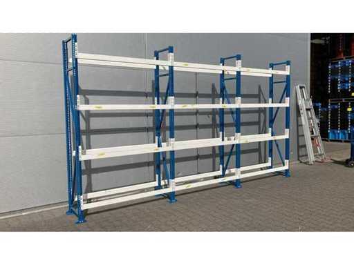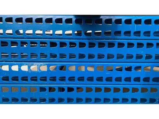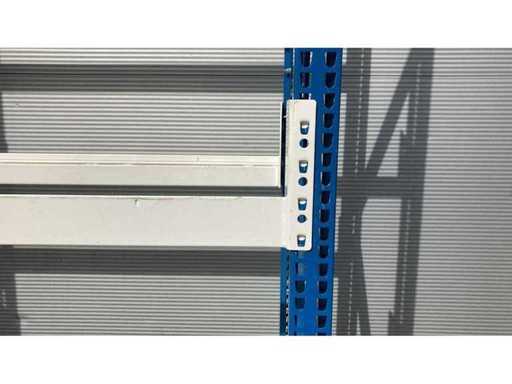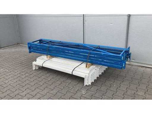 gebruikt; gedemonteerd; compact verpakt; 4x staander 2500x500mm; 24x ligger 1400mm; 7685*4/7688*24