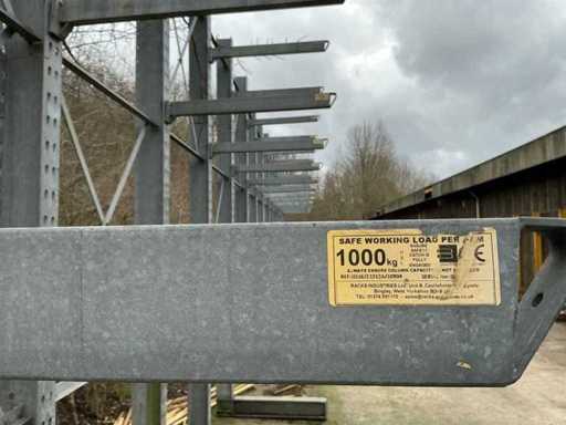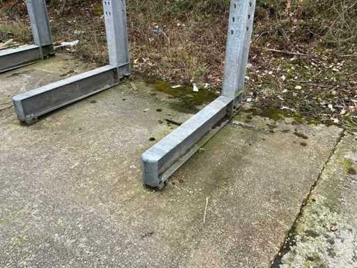Dit kavel heeft 7 staanders en 28 armen; Reeds gedemonteerd; wordt gedemonteerd uitgeleverd; armen in hoogte verstelbaar; kolomhoogte 4800mm; armlengte 1200mm;