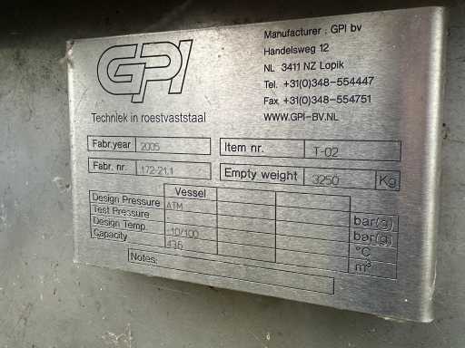 Inhoud: 43,6 m3. Met onderuitlaat en mangat.