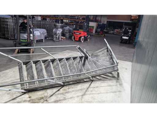 Aantal tredes: 16. Trap hoogte: ca 3500mm. Rechtsdraaiend 90 graden.