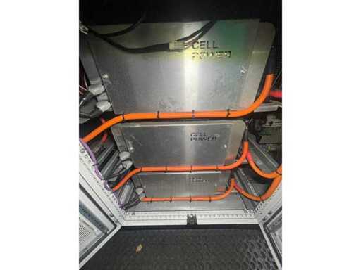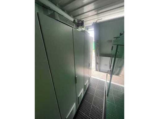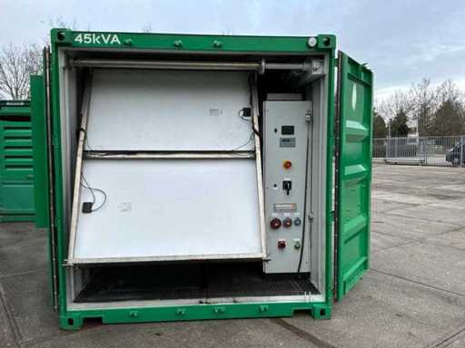 Gebouwd in container voorzien van opgebouwde zonnepanelen elektrisch uitklapbaar, 3x 2-deurs Rittal kast met “Victron Energy” omvormers/laders, controller en accu units