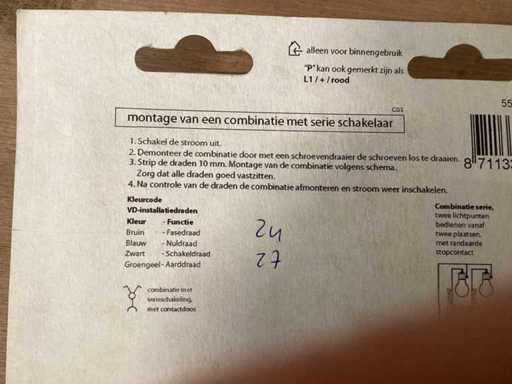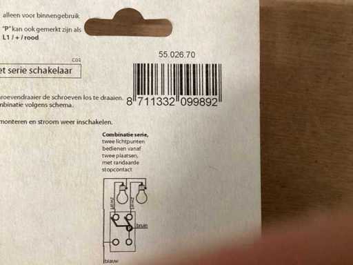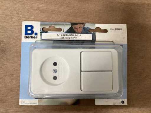Berker opbouwcombinatie, wissel/wisselschakelaar + stopcontact zonder randaarde, polarwit (51x)