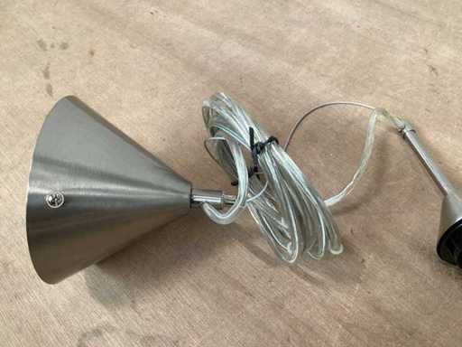 Snoerpendel geborsteld RVS, nikkel,snoerlengte 200cm, verstelbaar,E27 fitting, conische kap