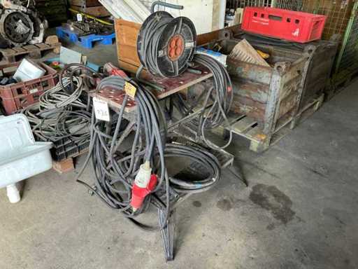 Inclusief 1x 400V/32A verlengsnoer L25m, 1x 230V/16A verlengsnoer L10m, kabelhaspel 230V L40m, set startkabels