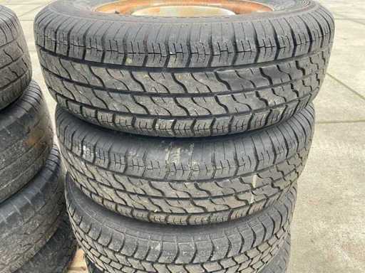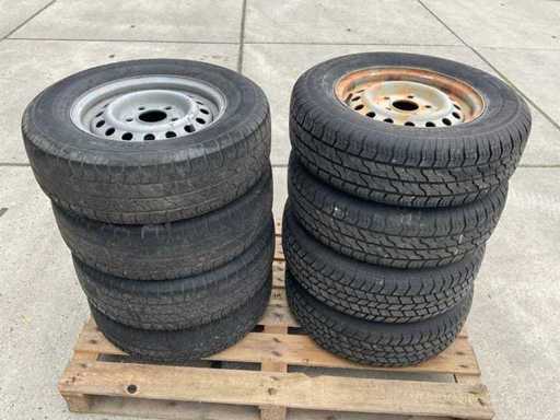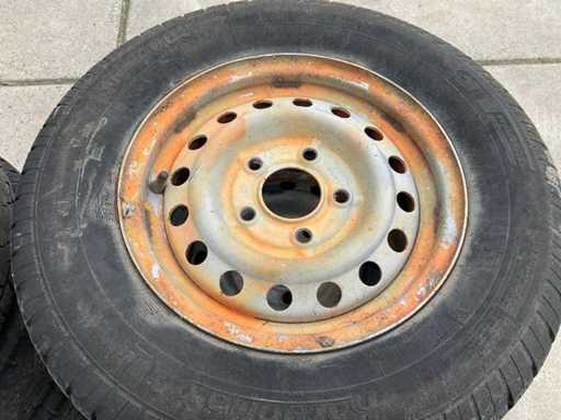 Bandenmaat 185/70R13, op 5-gaats stalen velgen, steekmaat 115mm, naaf ø 65mm