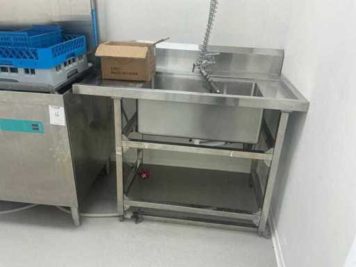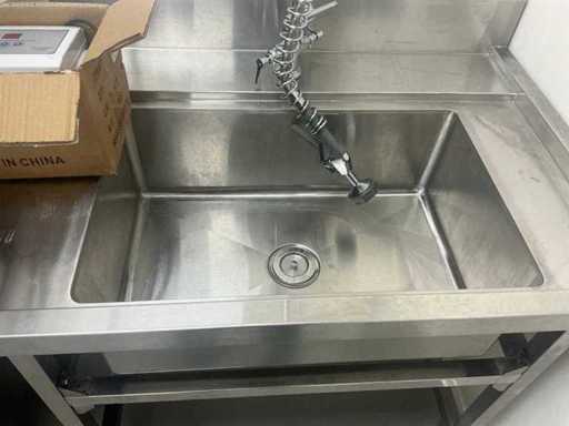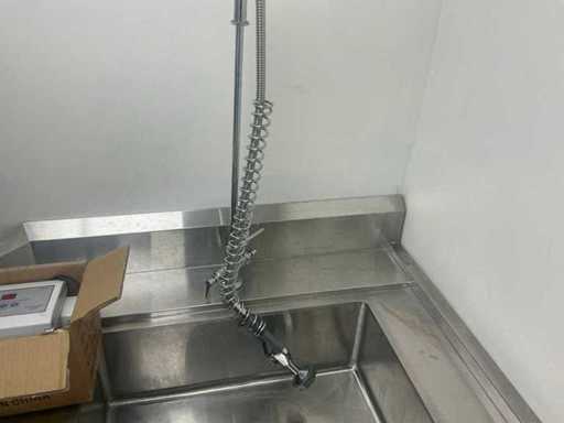 Afmeting vaatwasser 115x73xH158cm; afmetingen spoeltafel 120x72xH100cm; afmetingen rek 110cm