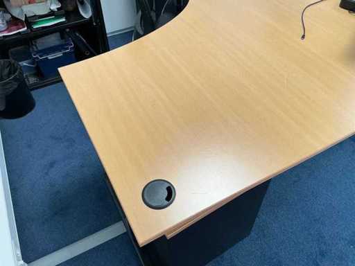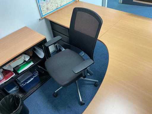Bestaande uit een bureau, bureaustoel en 2 ladeblokken. Monitoren, desktops en andere apparatuur niet meegeleverd.