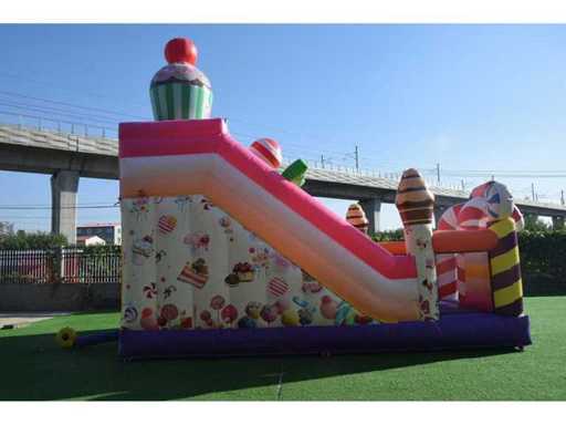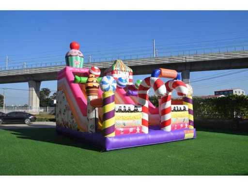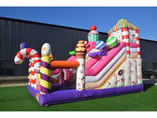 XXL Springkussen met glijbaan (Snoep thema)