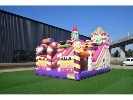 De springkussen wordt nieuw in verpakking geleverd, wordt compleet geleverd inclusief bijpassende blower, uniek en kleurrijk snoep thema, opvallend design dat direct aandacht trekt, grote glijbaan voor extra speelplezier, geschikt voor meerdere kinderen tegelijk, echte blikvanger op elk feest, inclusief CE en EN14960 keuring, wordt op pallet geleverd