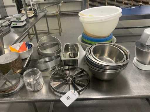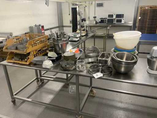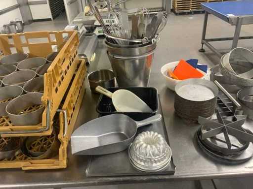 waaronder: rvs beslagkommen, vlasipannen, rvs emmers, glaseermessen, gardens, taartverdelers, bakringen, deegschrapers