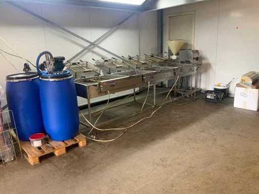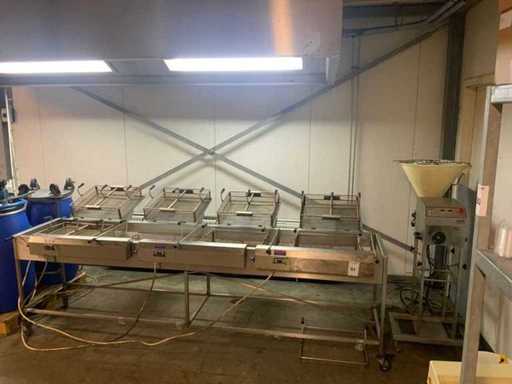 voorzien van digitale uitlezing, 9 korven, 1 Unidos verrijdbare doseermachine, 1 MGF mini luchtcompressor, 1 oliebollenpomp met 3 vaten, volume inhoud 3 x 150 liter en transportkar