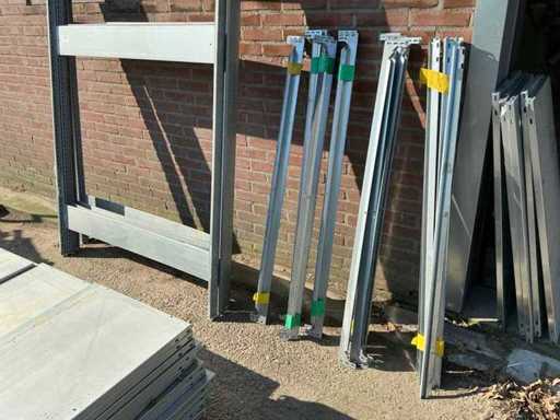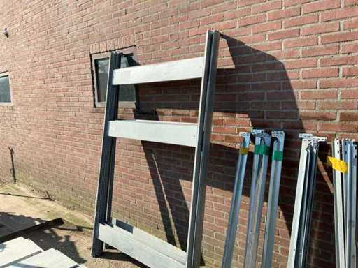 5 staanders 200 cm hoog 120 breed, 20 liggers 130 cm lang 12 afstand houders 34 vloeren 125 cm lang