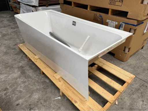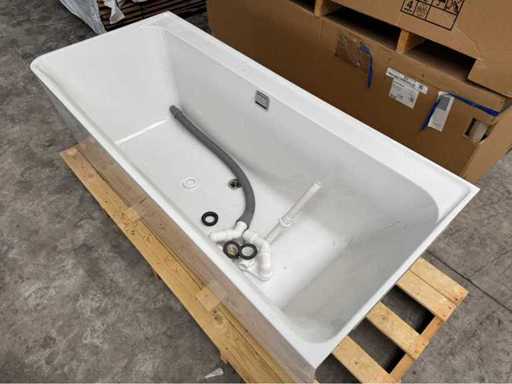 Ongebruikt bad, 1x gemonteerd geweest maar door de leverancier de verkeerde kleur geleverd in een projectbouw. Daardoor wel kitrestanten aanwezig aan de muurzijde van het bad.