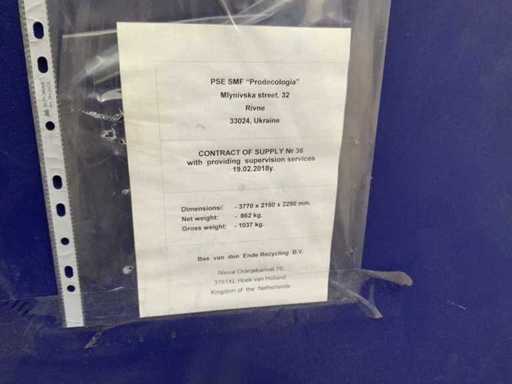 Met bijbehorende besturingskast en drie bijbehorende vijzels, machine is nagenoeg ongebruikt en heeft alleen gedraaid in een testopstelling. Wordt kosteloos met hijskraan/heftruck geladen.
