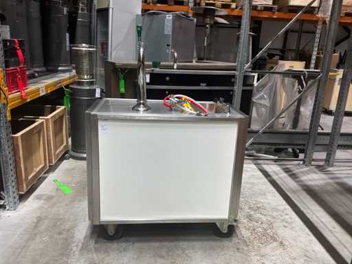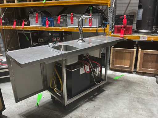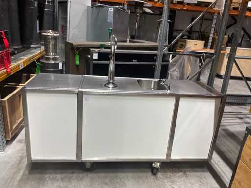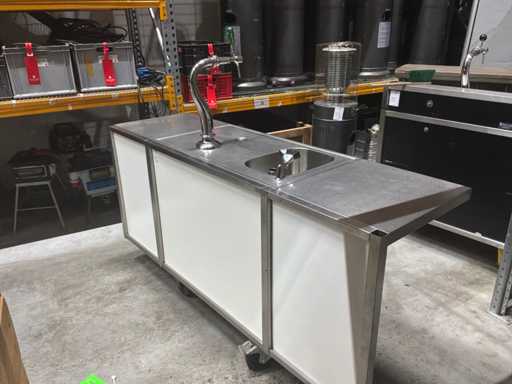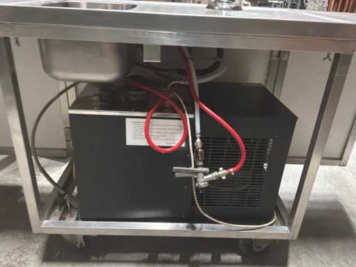 Bar heeft uitklapbare zijkanten. Voorzien van: spoelbak, bierkraan, waterkoeler, doorspoel aansluiting, gardenakoppeling.