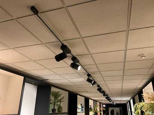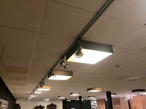 Bestaande uit diverse soorten lampen waaronder spots; hangt op 285 cm hoog