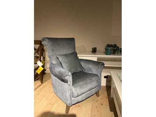 Tv- meubel met afmeting circa 160 x 45 x 65 cm, salontafel voorzien van glazen bovenblad en 4 glazen deuren met afmeting circa 90 x 90 x 45 cm compleet met fauteuil met afmeting circa 80 x 70 x 102 cm