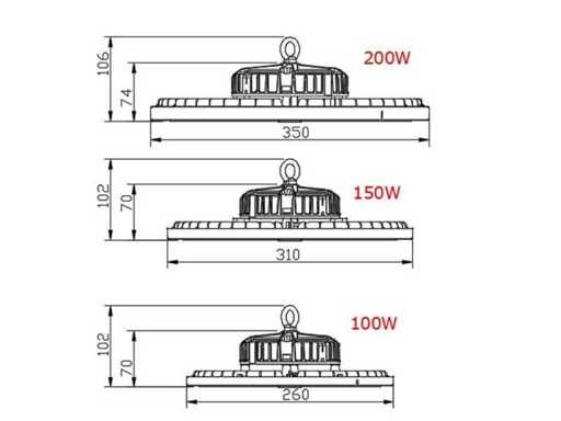 40 x Highbay UFO 100 Watt LED in PRO-ontwerp biedt hoge efficiëntie met 12.000 lumen bij 100 lumen per watt - Uitgerust met Professioneel LED voor superieure helderheid en betrouwbaarheid - Dimbaar met een schakelaar die 3 verschillende standen biedt: 60%/80%/100% vermogen - Aangedreven door een hoogwaardige Lifud-driver, die stabiele prestaties garandeert - Koud wit licht bij 6500K voor heldere, duidelijke verlichting - Waterdicht met een IP65-classificatie, ideaal voor zowel binnen- als buitengebruik - Afmetingen: Ø 260mm x 102mm voor eenvoudige installatie - Duurzame constructie van gegoten aluminium met een PC-lens, met een levensduur van 30.000 uur - 90° stralingshoek voor brede lichtdekking - Energiezuinig met een power factor >0,95 - Hoge CRI >80 voor nauwkeurige kleurweergave - Compatibel met 110-265V - Geleverd met 5 jaar garantie voor gemoedsrust - Weinig onderhoud door de lange levensduur - Efficiënte warmteafvoer voorkomt oververhitting - Milieuvriendelijk en kosteneffectief, verlaagt de energierekening - Biedt flikkervrij, stabiel licht.