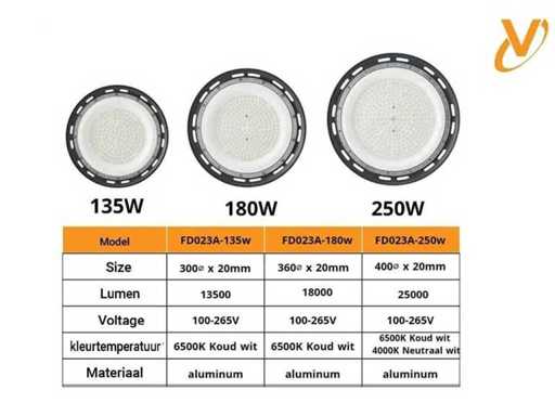 40 x Highbay UFO 250 Watt LED SLIM design biedt hoge efficiëntie met 25.000 lumen bij 100 lumen per watt - Koud wit licht bij 6500K voor heldere, scherpe verlichting - Waterdichte IP65-classificatie, ideaal voor zowel binnen- als buitengebruik - Slank, compact ontwerp (Ø 400 x 70mm) voor eenvoudige installatie - Duurzame constructie van aluminium en PC met een levensduur van 30.000 uur - 110° stralingshoek voor brede lichtdekking - Energiezuinig met een power factor >0,95 - Hoge CRI >80 voor nauwkeurige kleurweergave - Compatibel met 110-265V - Met 2 jaar garantie voor uw gemoedsrust - Geïntegreerde DOB IC-driver zorgt voor stabiele prestaties - Weinig onderhoud dankzij de lange levensduur - Efficiënte warmteafvoer voorkomt oververhitting - Milieuvriendelijk en kosteneffectief, verlaagt energiekosten - Biedt flikkervrije, stabiele verlichting.