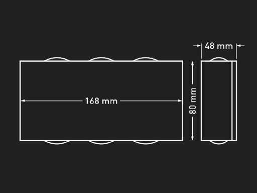 lichtkleur 3000K warm wit, lichtstroom 490 lumen, SMD LED, IP54 afdichting, materiaal aluminium, afm 168mm x 80mm x 48mm, voltage 85-265V, bevestiging inclusief, geschikt voor binnen en buiten, SKU 01078