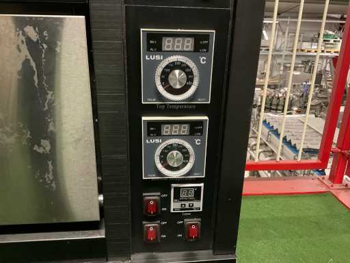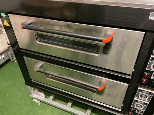 Verrijdbaar, 3 oven units, 4 bakschalen, afmeting per oven unit: 870x680x230mm, temperatuur bereik 0-400 graden Celsius, timer en verlichting schakelaar, digitale uitlezing.