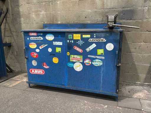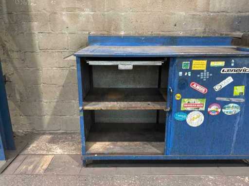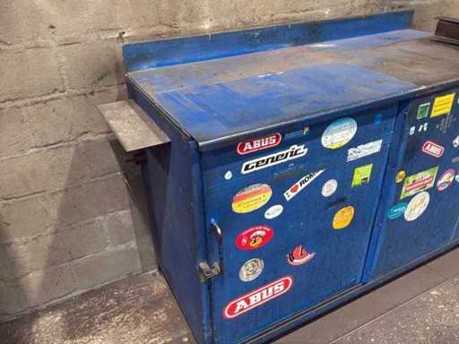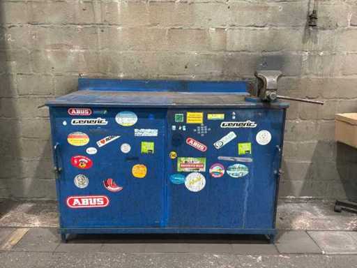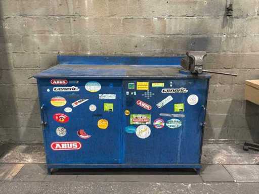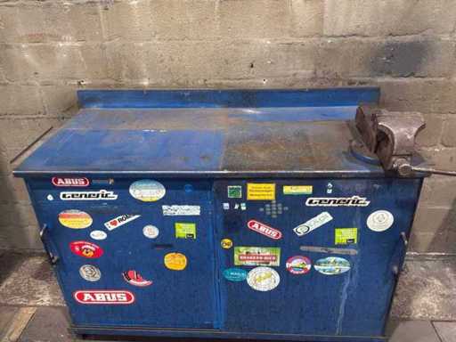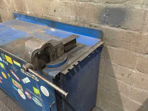 Stalen werkbank met bankschroef