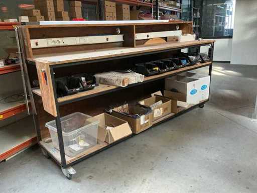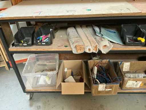 Voorzien van houten bovenblad en metalen onderstel compleet met inhoud