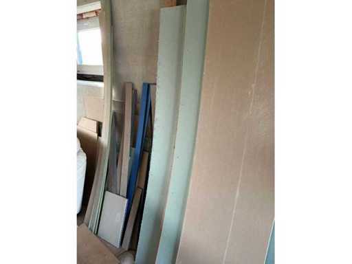 Enige isolatie, partij reeds aangesneden houten planken en gyprocplaten,