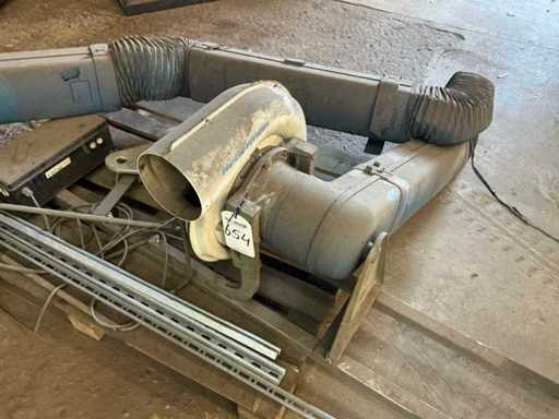 1x mederman afzuiging met afzuigarm, 1x gedemonteerde arm van circa 6 meter.