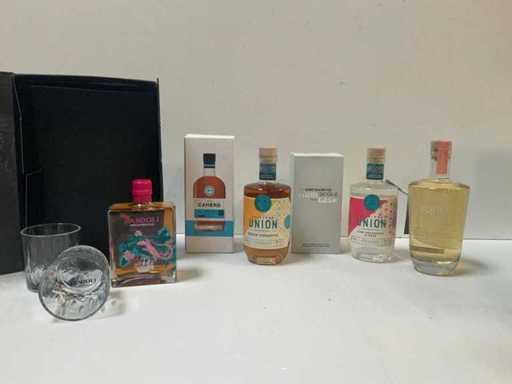 5x 0,70L + 1x 0,50L, + 2 glazen, zie foto’s voor merken en types