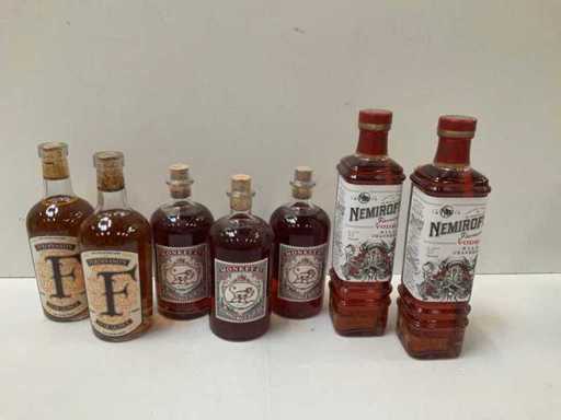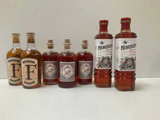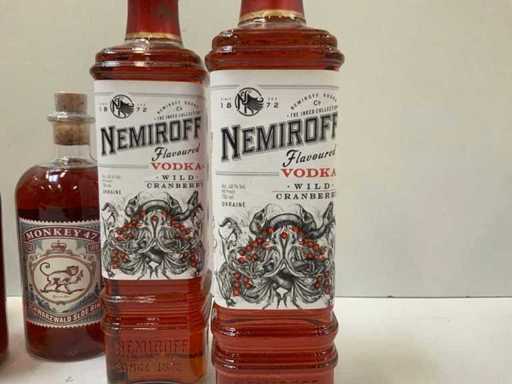 2x Gin Ferdinand’s, 0,50L + 3x Gin Monkey 47, 0,50L + 2x Vodka Nemiroff, 0,70L